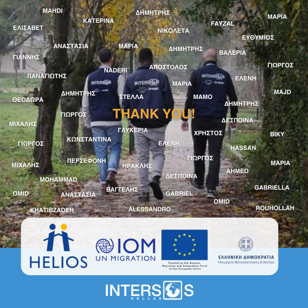INTERSOS Hellas participated as a partner in the HELIOS Project integration program from 2019-2024, which was implemented with the International Organization for Migration (IOM Greece) in collaboration with partners & with funding from the Ministry of Migration & Asylum and the European Union.